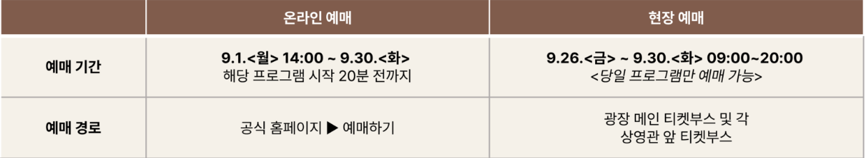 - 일정: 9월 26일(금) ~ 9월 30일(화) 11:00 ~ 18:00
