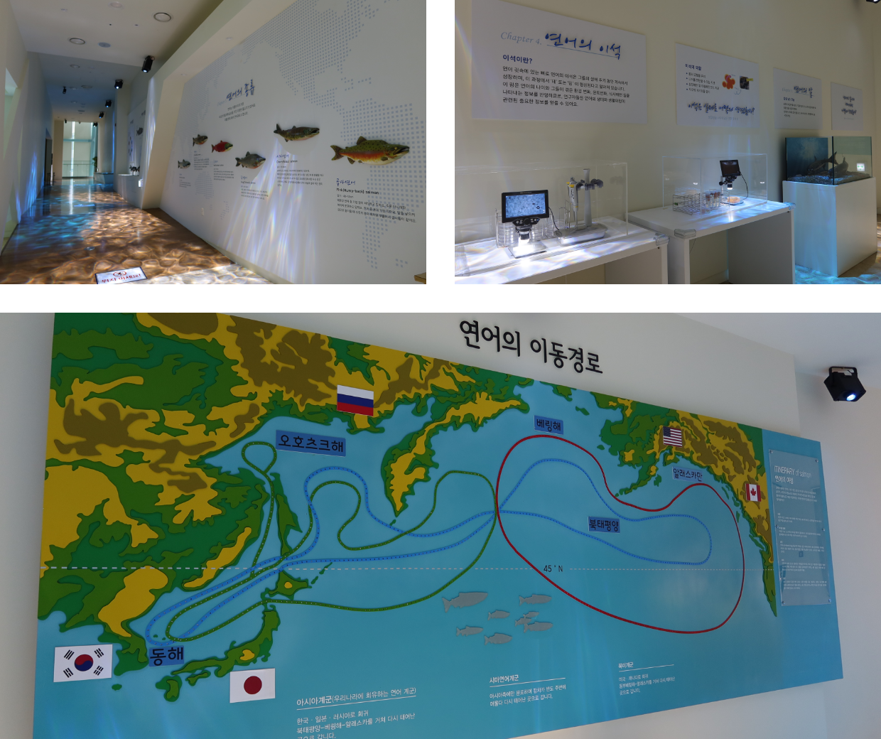 두번째 이야기는 다양한 어종들의 세계로 구성되어 있다. 아프리카의 관상어, 남아메리카의 관상어, 수달 디오라마와 폭포수조를 감상하고 나면, 드디어 연어의 삶을 마주한다.