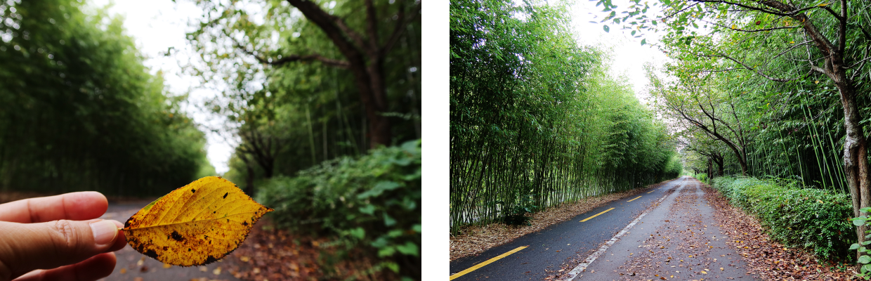 △노랗게 익어가는 낙엽이 정겹다. 대나무숲을 흔드는 가을바람이 내게 무언가 속삭이는 듯 하다.