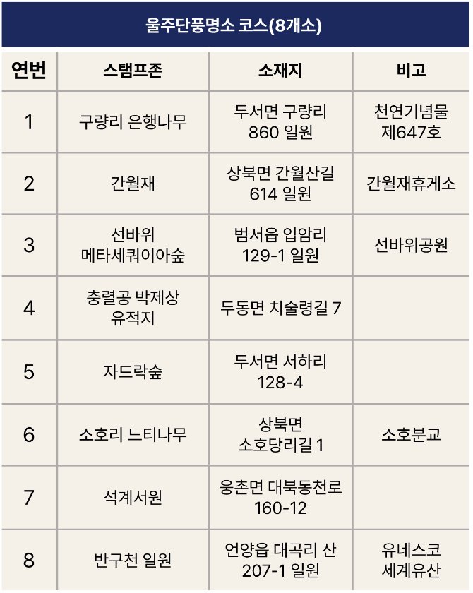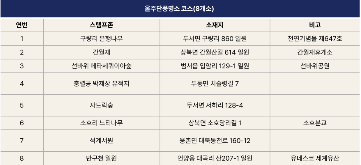 - ‘울주단풍명소’ 코스 중 2개소 이상 포함 방문 시