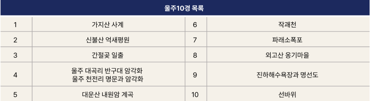 - 울주 10경 중 2곳 + 울주 카페 1곳 이상 방문 후